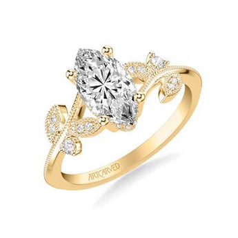 ArtCarved Marquise Center Floral Hidden Halo Engagement Ring Semi-Mounting in 14K Yellow Gold