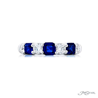 J B Star Square Emerald-Cut Sapphire and Round Diamond Band in Platinum