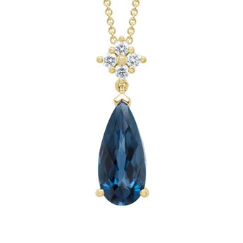 Mountz Collection London Blue Topaz and Diamond Pendant Necklace in 14K Yellow Gold