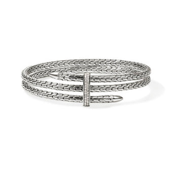 John Hardy Spear Diamond Pavé Slim Double Flex Cuff in Sterling Silver - Size Medium