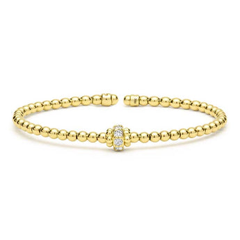 LAGOS 3MM Caviar Beaded Diamond Rondelle Cuff Bracelet in 18K Yellow Gold, Size Medium