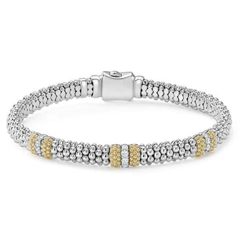 LAGOS Caviar Lux Three Station Diamond Bracelet in Sterling Silver and 18K Yellow Gold