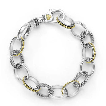 LAGOS Signature Caviar Large Two-Tone Caviar Link Bracelet in Sterling Silver and 18K Gold Size M