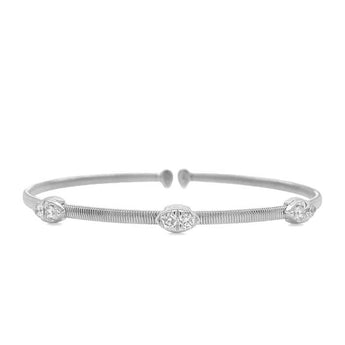 Shy Creation Marquise Station Diamond Flex Cuff Bracelet in 14K White Gold