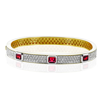 Simon G. Pavé Diamond and Ruby Bangle in 18K White and Yellow Gold