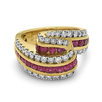 Charles Krypell "Krypell Collection" Ruby and Diamond Triple Fold Ring in 18K Yellow Gold