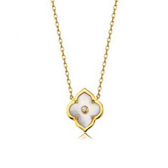 Charles Krypell Les Fleurs Collection Mother of Pearl and Diamond Pendant Necklace in 18K Yellow Go