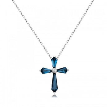 Charles Krypell Pastel Collection London Blue Topaz and Diamond Cross in 18K White Gold