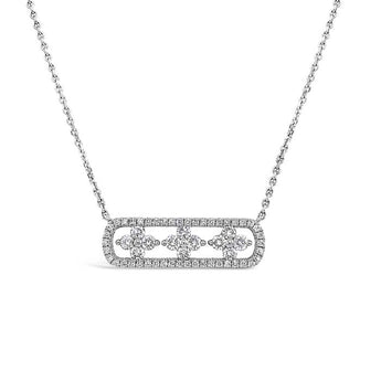Charles Krypell Precious Pastel Diamond Clover Bar Pendant Necklace in 18K White Gold