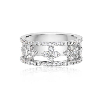Charles Krypell Precious Pastel Diamond Clover Ring in 18K White Gold