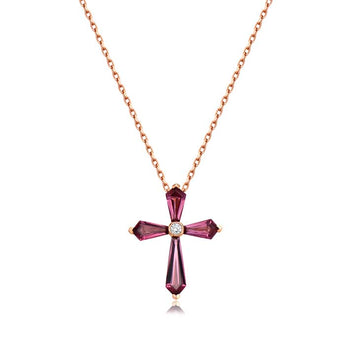 Charles Krypell Rhodolite Garnet Cross Pendant with Diamond Accent Necklace in 18K Yellow Gold