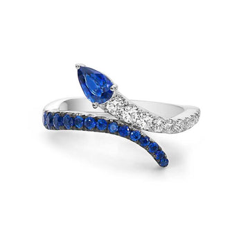 Charles Krypell Serpentine Diamond and Sapphire Bypass Ring in 18K White Gold