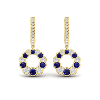 Vlora "Adella Collection" Sapphire and Diamond Hoop Dangle Earrings in 14K Yellow Gold