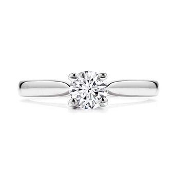 Intrinsic grace flows from a simple yet elegant solitaire set with a perfectly cut Hearts On Fire diamond.