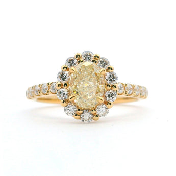 Mountz Collection Oval Yellow Diamond Ring with White Diamond Halo in 18K Yellow Gold