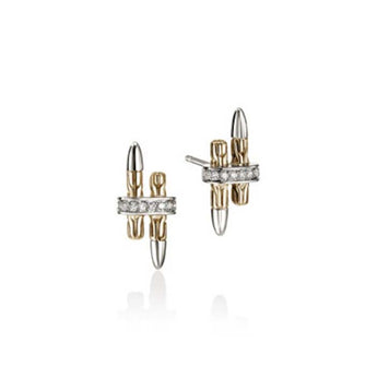 John Hardy Spear Diamond Pavé Stud Earrings in Sterling Silver and 14K Yellow Gold