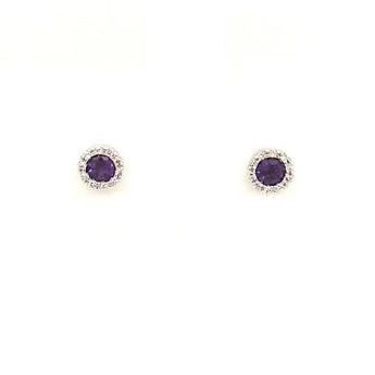 Mountz Collection Amethyst Stud Earrings with Diamond Halo in 14K White Gold