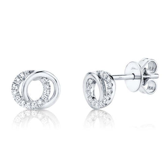 Shy Creation "Kate Collection" Diamond Love Knot Circle Stud Earrings in 14K White Gold