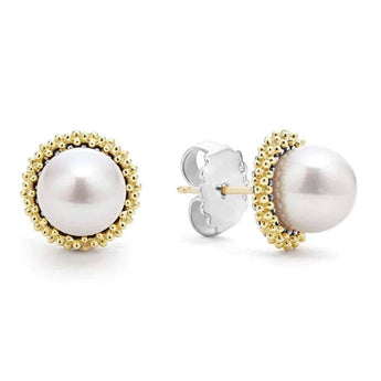 LAGOS Two-Tone Caviar Pearl Stud Earrings in Sterling Silver and 18K Yellow Gold
