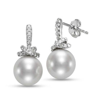 Mastoloni 9-9.5mm Freshwater Cultured Pearl Earrings with Diamonds in 18K White Gold