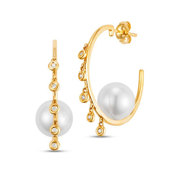 Mastoloni Pearl Hoops with Diamond Fringe in 14K Yellow Gold