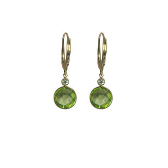 Mountz Collection Round Drop Peridot Earrings with Diamond Detail in 14K Yellow Gold
