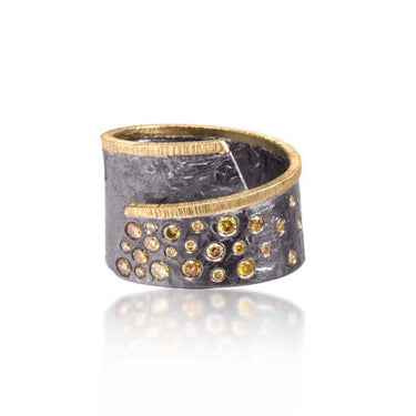 Elizabeth Garvin Cyclone Collection .36TW Yellow Diamond Ring in Oxidized Sterling Silver and 18K Yellow Gold