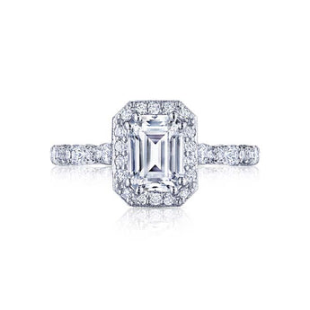 Tacori "Petite Crescent" Emerald Shaped Engagement Ring Semi Mounting in 18K White Gold