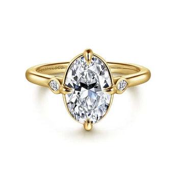 Gabriel & Co. "Charli" Oval Three Stone Diamond Engagement Ring Semi-Mounting in 14K Yellow Gold