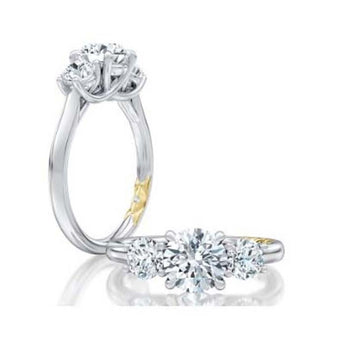 A. Jaffe 3 Stone Engagement Ring Semi-Mounting in 14K White and Yellow Gold