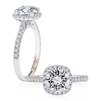 A. Jaffe "Classics Collection" Engagement Ring Semi-Mounting Cushion Halo in 14K White and Rose Gold