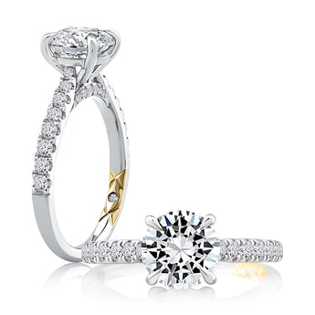 A. Jaffe Round Diamond Engagement Ring Semi-Mounting in 14K White Gold with Yellow Gold Accent