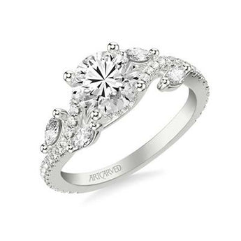 ArtCarved Round Center Floral Engagement Ring Semi-Mounting with Floating Marquise Diamond Petals in 14K White Gold