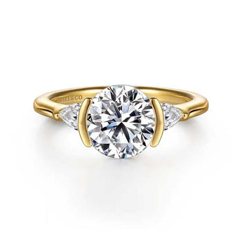 Gabriel & Co. Alesandra Round Diamond Half Bezel Three Stone Engagement Ring Semi-Mounting in 14K Yellow Gold