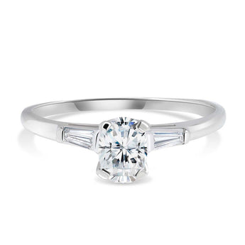 Estate 3-Stone Oval and Tapered Baguette Diamond Engagement Ring in 14K White Gold