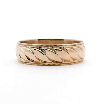 Estate 6.5MM Carved Detail Wedding Band in 14K Yellow Gold