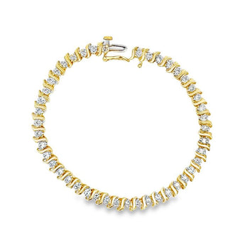 Estate 7" Diamond S-Link Straightline Bracelet in 14K Yellow Gold
