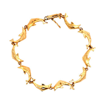 Estate 7" Dolphin Link Bracelet in 14K Yellow Gold