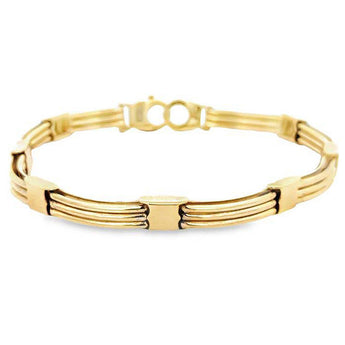Estate 8” Ribbed Curved Bar Link Bracelet in 14K Yellow Gold