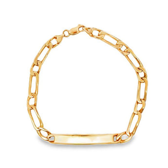 Estate 9.5" Figaro Link ID Bracelet in 14K Yellow Gold