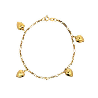 Estate Dangling Hearts Figaro Link Bracelet in 14K Yellow Gold