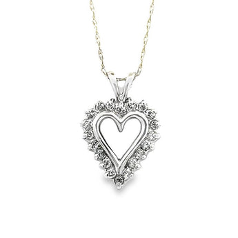 Estate Diamond Heart Pendant with Rope Chain in 10K White Gold