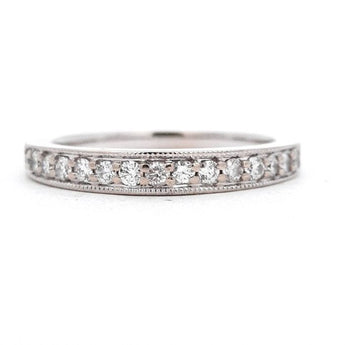 Estate Diamond Wedding Band with Milgrain Detail in 14K White Gold