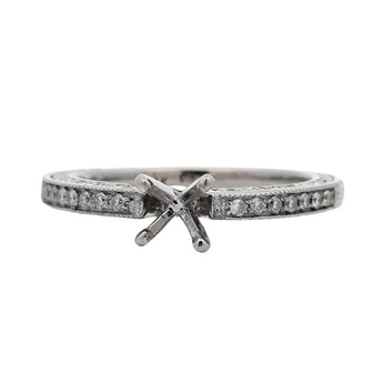 Estate Engagement Ring Semi-Mounting with Diamond Shoulders and Gallery in 14K White Gold