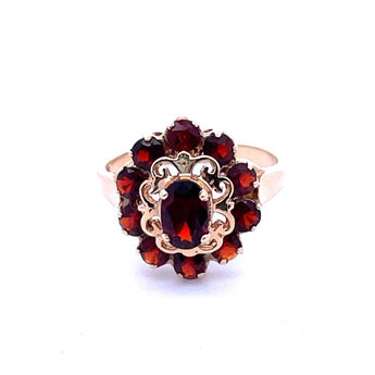 Estate Garnet Halo Ring in 14K Yellow Gold