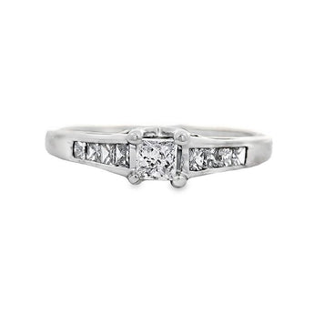 Estate Princess Cut Engagement Ring in 14K White Gold