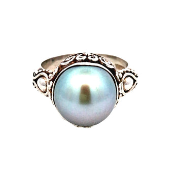Estate Silver Mabé Pearl Ring in Sterling Silver