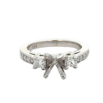 Estate Three-Stone Diamond Engagement Ring Semi-Mounting in 18K White Gold and Platinum