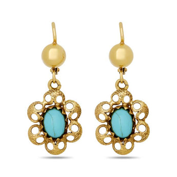 Estate Turquoise Dangle Earrings in 18K Yellow Gold