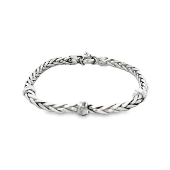 Estate Wheat Station Bracelet with Diamonds in 14K White Gold